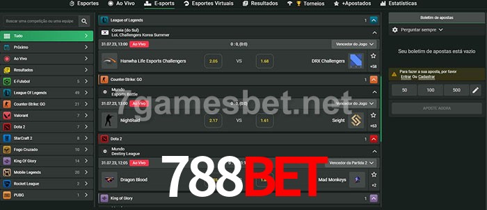 O 788bet oferece uma grande seleção de opções de apostas em e-sports com probabilidades competitivas